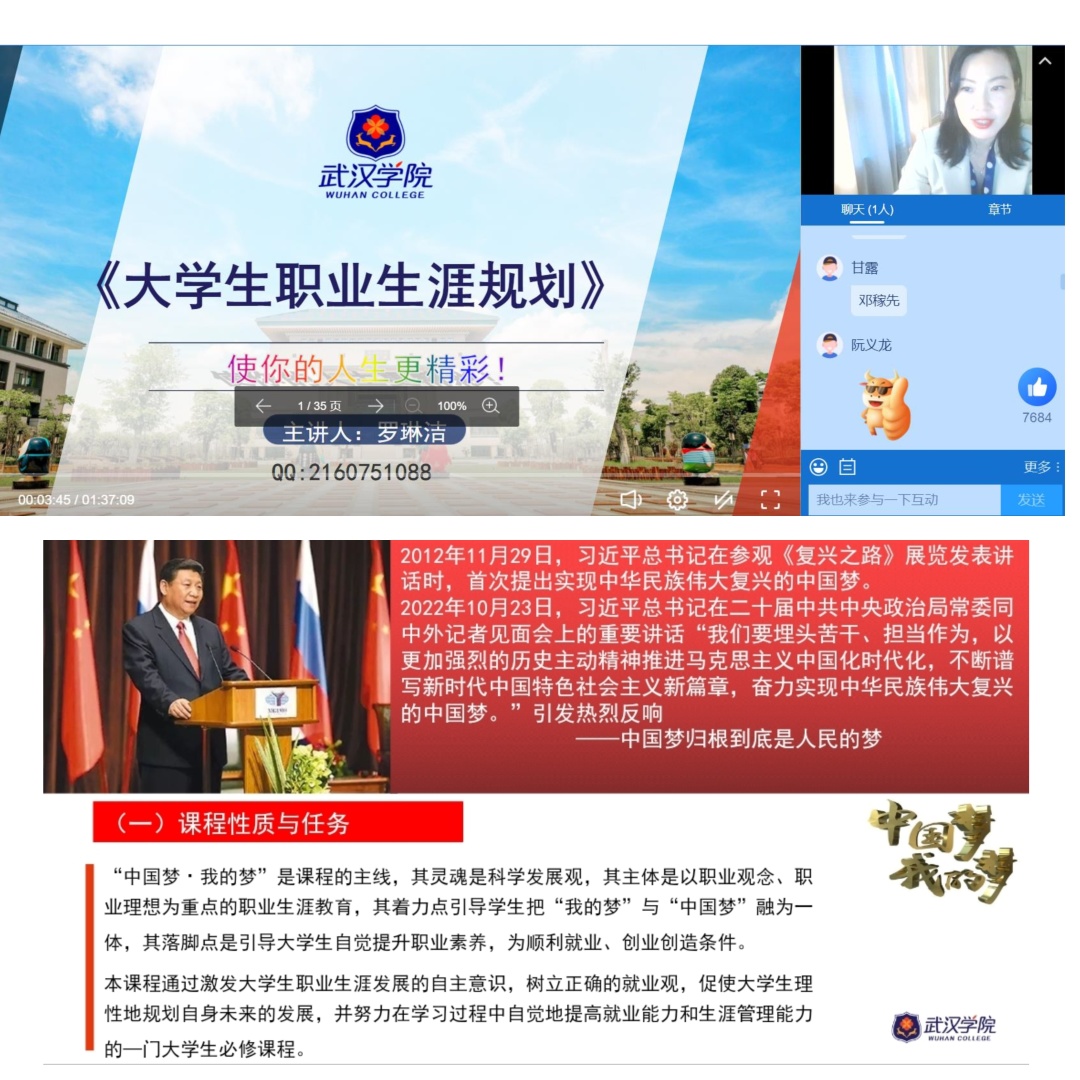 此次,《职业规划》思政课改实践是将职业发展与就业指导类课程定位于一门德育课,结合二十大的召开契机,建立新生对学业与职业目标意识,帮助学生在制定个人职业生涯规划时,体现生命的价值,要为国家和民族的命运而奋斗,开启“我的梦 · 中国梦”的职业理想。