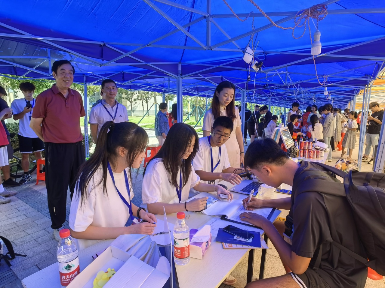 通识教育课部主任何捷一教授来到现场看望新生们,党总支副书记、副主任魏成杰、体育系主任柳华清、专任教师杨颖、新生辅导员吴恩婵、郑欢都在现场为新生入学做好周到的服务。