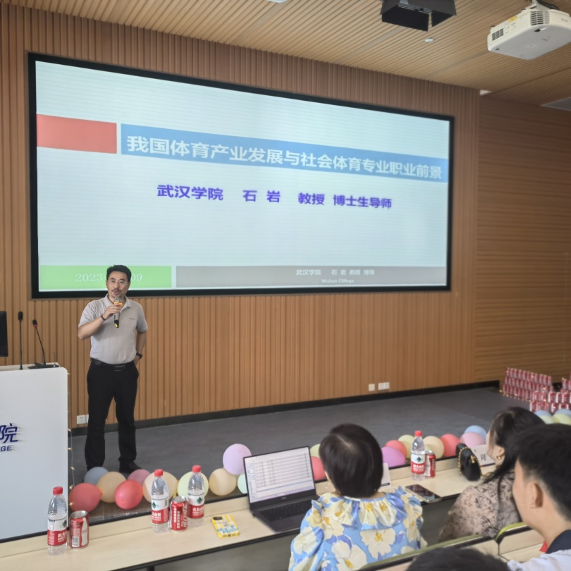 通识教育课部体育系博导、石岩教授介绍了我国体育产业发展与社会体育专业职业前景。