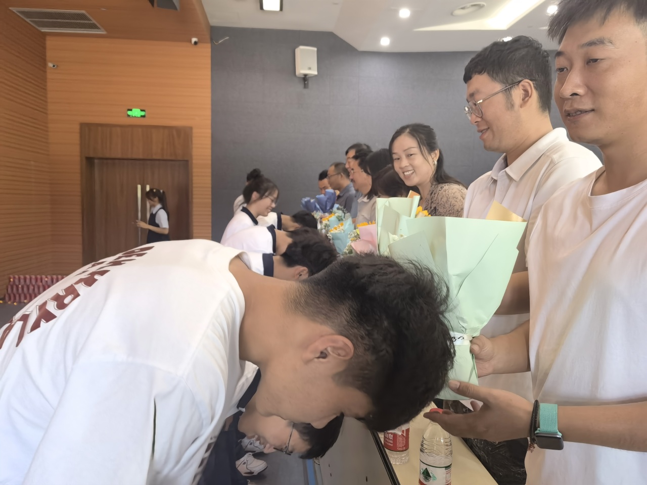 当天恰逢39个教师节,新生代表们在新生开学典礼上向老师们鲜花表达祝福。