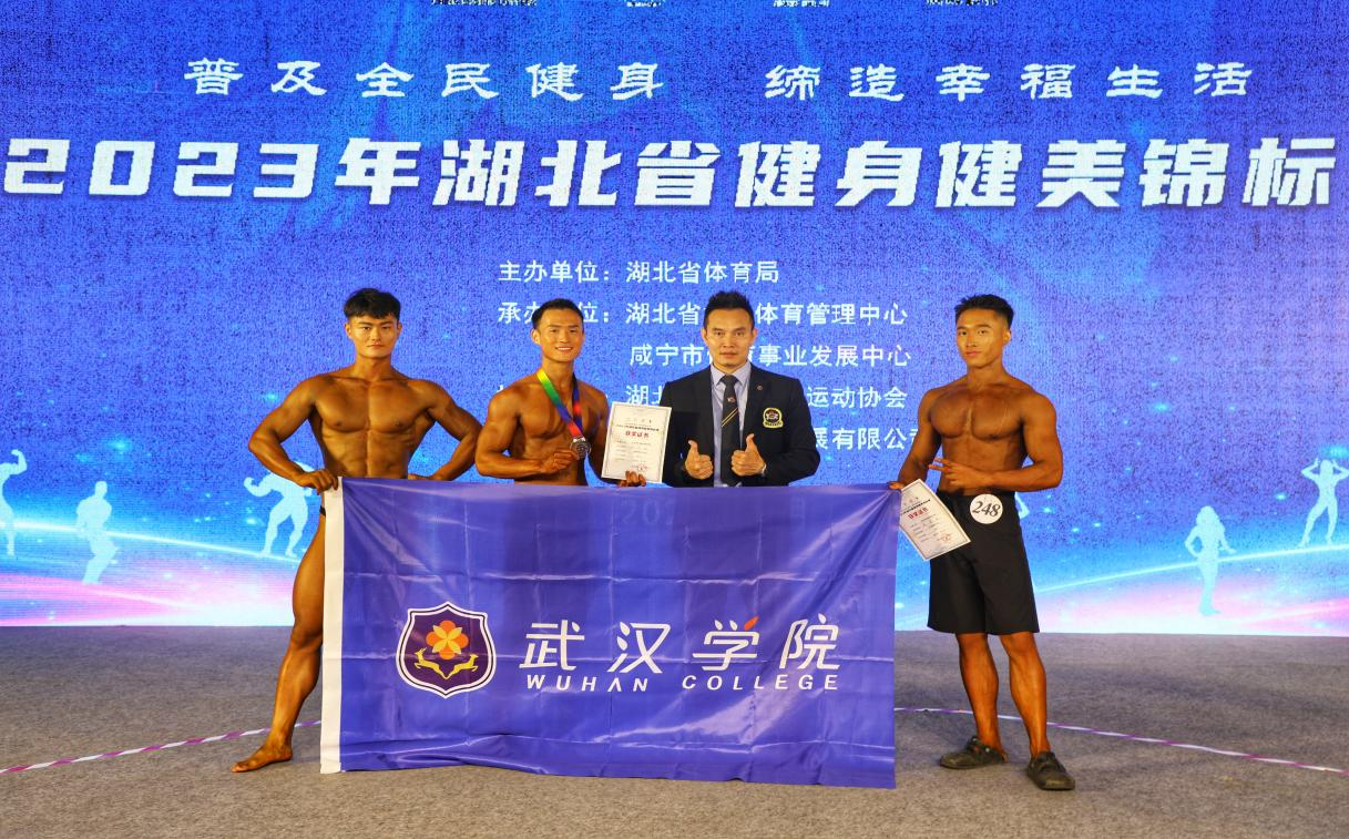 9月15-18日湖北省健身健美锦标赛在咸宁市举行,我校三名参赛同学发挥出色,在300多名运动员中脱颖而出,姜伟豪获得传统健美高校公开组第二名,黄枭雄获得男子健体高校公开组第四名,朱洪康同学获得古典健美高校公开组第四名,并荣获高校组团体总分第六名的好成绩。