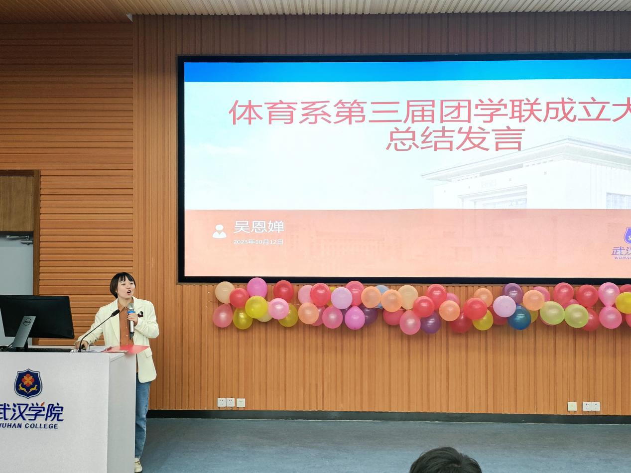 大会最后,团委书记吴恩婵老师总结发言。她结合自身的学生干部经验,分享了三个关键词:积极,热情,团结。希望全体团学联成员能够在体育系团学联这个好的平台上,去经历,去磨合,去提升自己的能力,不断的提高自己。愿所有同学眼里有光,心中有梦,脚踏实地,保持积极乐观的心态,不惧挑战,无悔大学青春!