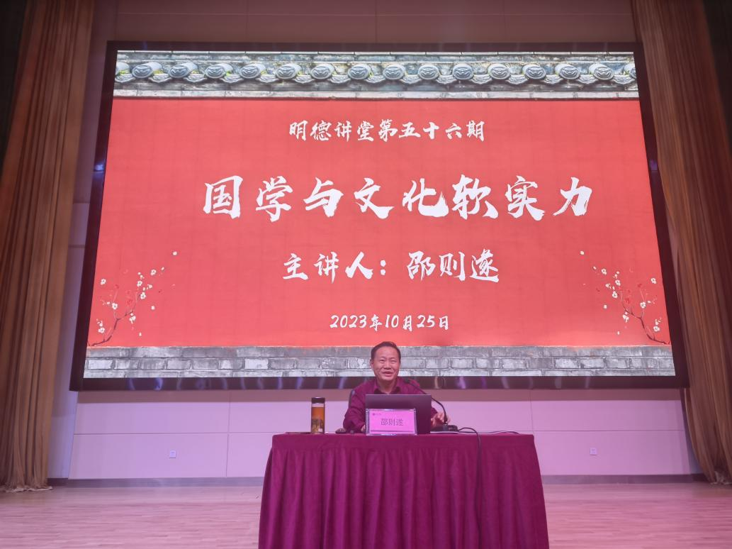 邵则遂教授在讲述中表示,国学其原义为国家所设立的教育机构和学校,随着演变,现在的国学是指源远流长的中国历史文化,博大精深的文化内涵。从生生不息的变意之道到和而不同的共处理念;从天下兴亡、匹夫有责的爱国精神到扶正扬善、恪守信义的社会美德。这些无疑是民族文化的思想根基,也是弘扬中华文化的宝贵财富和资源优势。