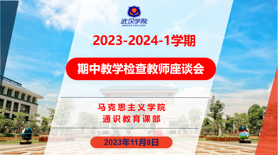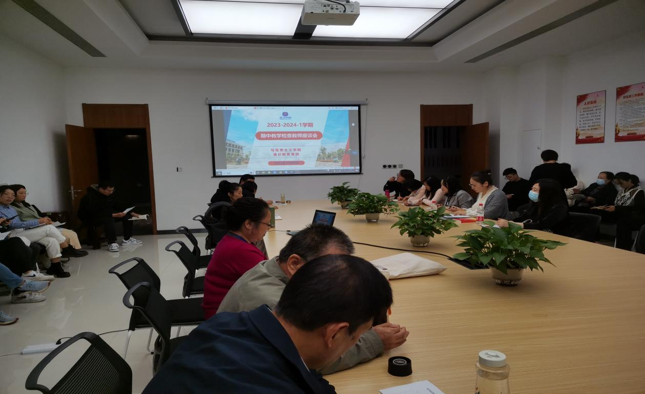 2023年11月8日马克思主义学院、通识教育课部在图书馆104报告厅开展期中教学检查教师座谈会。座谈会由王利军副院长主持,院部全体教师参与座谈交流。