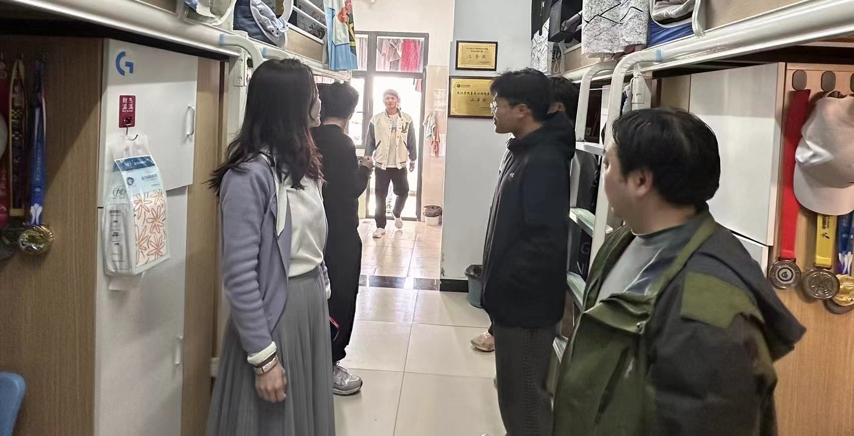 随后大家又前往了女宿椿萱斋102室,老师们认真检查了宿舍的环境卫生、物品摆放、个人卫生等方面。他们发现,宿舍内整洁干净,物品摆放有序,空气清新。老师们对女生宿舍的文明建设给予了高度的评价与最真挚的赞扬。