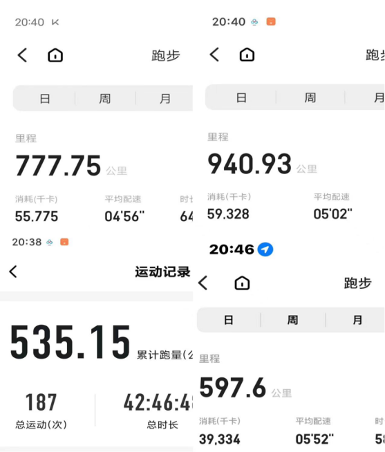 除此之外他们还会一起去各个地方参与马拉松比赛,目前他们已经参加了荆州马拉松、孝感马拉松、潜江马拉松、黄石马拉松四场马拉松,在他们眼里,马拉松不仅是个人的比赛,更是四个人共同的比赛,少一个人都无法完成的比赛,没有每天晚上共同在操场上挥洒汗水,就没有四次共同站在马拉松的终点拍照的瞬间。值得一提的是,他们四人每人的总跑量都在500KM以上,这没有相互鼓励与支持是很难做到的。