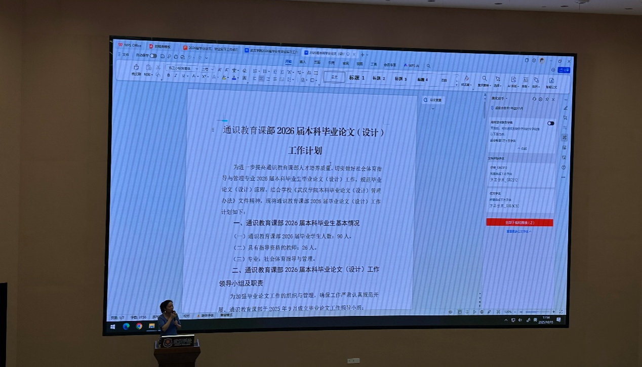 本次会议的召开,为2022级学生毕业实习与毕业论文工作划定了清晰“路线图”,进一步统一了思想、明确了责任。接下来,通识教育课部体育部将与各指导教师将严格按照会议部署,密切配合、协同发力,全程做好学生实习指导、论文把关等服务工作;同时也希望2022级学生能准确把握各项时间节点与要求,积极主动投入实习实践与论文写作,以扎实的专业能力和严谨的治学态度,顺利完成毕业阶段的各项任务,为大学学习生涯画上圆满的句号。