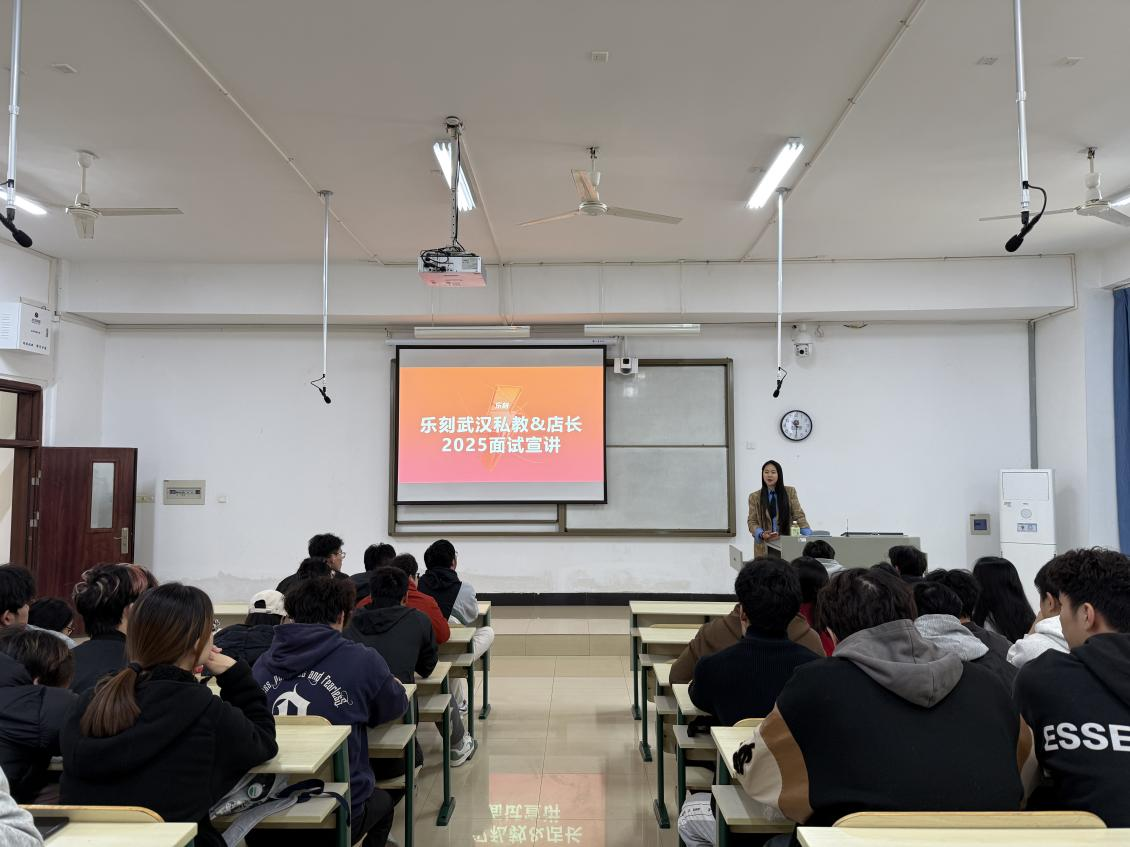 在招聘会现场,“乐刻”健身经理作为企业代表率先发言,结合PPT演示详细介绍了企业发展历程——从2018年成立初期的2家门店,到如今在省内拥有80家连锁场馆的规模,同时清晰拆解了健身教学、会员服务、场馆运营三大核心业务板块。
