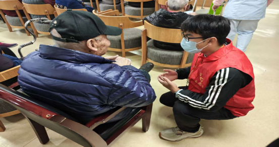 为进一步丰富活动内容,志愿者们还为老人们献上了一首首经典歌曲。熟悉的旋律在福利院内回荡,老人们纷纷跟着哼唱,现场充满了欢声笑语。