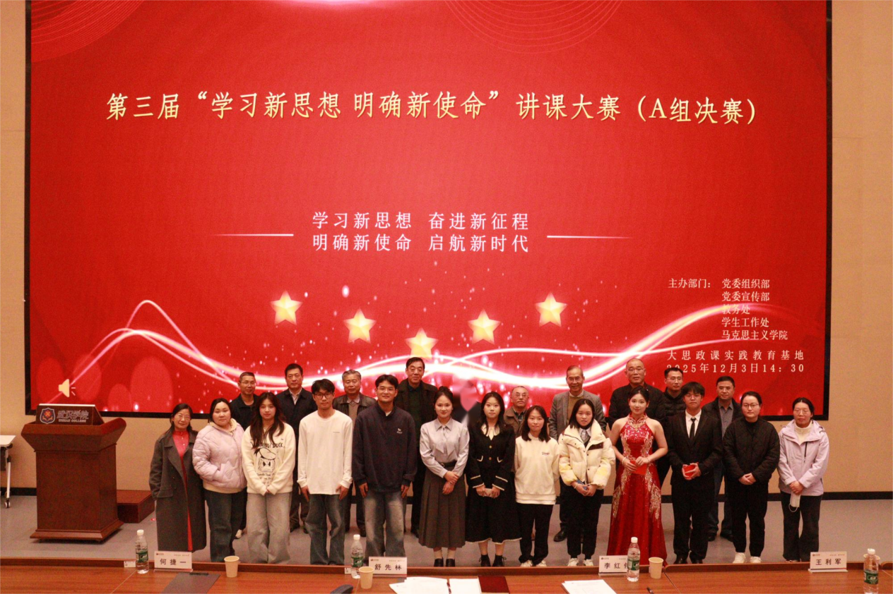 2025年12月3日下午,第三届“学习新思想 明确新使命”讲课大赛决赛(A组)活动,在武汉学院“大思政课”实践教学育人基地顺利举办。历经两个月选拔赛和初赛激烈比拼,24级学生中有20名优秀选手脱颖而出,经过复赛的选拔,最终共有8名选手进入决赛。马克思主义学院全体教师和24级学生代表参加了此次活动。
