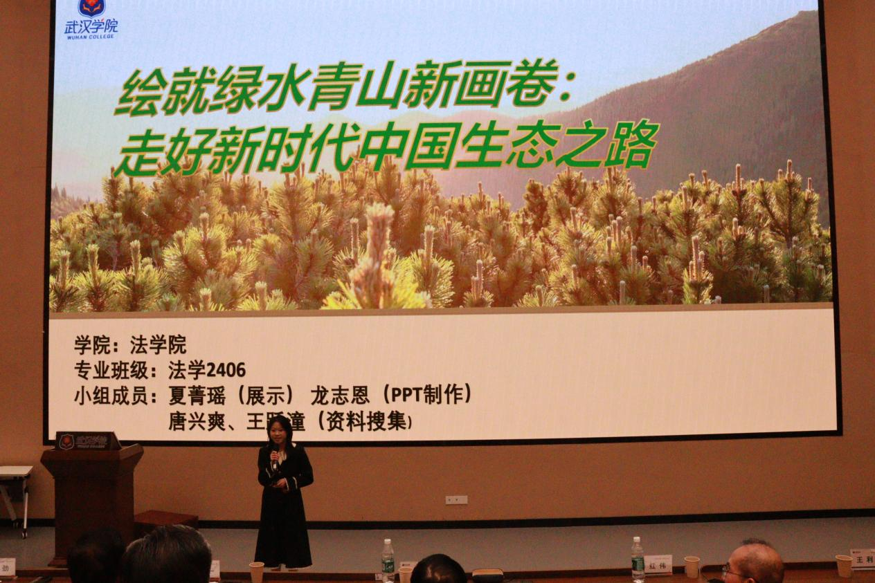 决赛中,8位选手依次呈现了精彩的讲课展示。冯逸霏同学讲课主题聚焦文化自信驱动下的强国文化新表达,以《哪吒》等国产动漫为生动案例,展现东方美学的当代呈现与文化产业的创新升级;夏菁瑶同学通过讲述“长江十年禁渔让母亲河休养生息”与“毛乌素沙地的绿色奇迹”等实践案例,阐述了绿水青山与金山银山的关系,号召青年为生态文明建设注入新动力;刘涵同学结合乡村振兴、科技创新与基层治理等实践,阐述了坚持全面深化改革的正确方向;刘作君同学以非遗传承、国漫国潮等文化“破圈”现象为例,阐释推动中华优秀传统文化创造性转化、创新性发展的重要意义,引导青年坚定文化自信、肩负文化使命;周怡蕊同学聚焦全面依法治国,呼吁青年勇担法治中国建设的时代责任;冉凯月同学围绕新时代人民军队的使命任务,讲述了“强国必须强军,军强才能国安”的战略意义,引导青年认识到国家安宁与人民幸福离不开一支强大的人民军队;张子彦同学以“以人民为中心,走好中国式现代化之路”为主题,讲解了中国式现代化的特色与本质要求,号召青年要将个人理想融入国家发展大局;马纪雪同学阐释了新质生产力的概念,并结合“华工科技激光技术”等案例,讲述了发展新质生产力的重大战略意义。