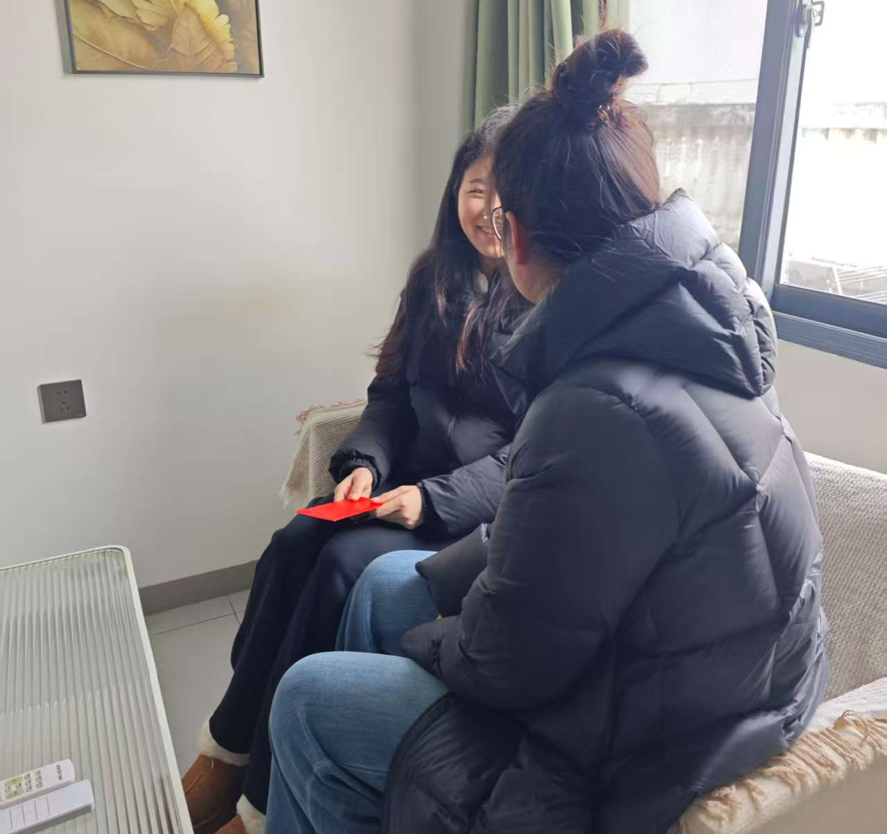 学院密切关注寒假期间学生的在家状态与生活保障。在蔡甸区走访期间,孔倩倩老师多次深入学生家中,细致了解同学们的假期学习进展与日常生活情况。重点关心论文进度是否顺畅、学习成果是否顺利推进,并反复叮嘱注意在家用电、用气、用水、饮食卫生和出行安全,并及时协助同学们协调解决生活中遇到的实际困难,全力做好春节期间的后勤支持与服务工作。