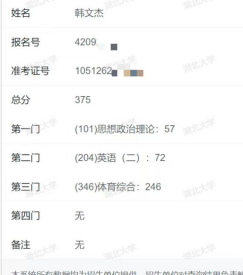 韩文杰与湖北大学的缘分,早在2022 年体育高考时便已埋下种子。彼时,湖大便成为他心中坚定的奋斗目标。进入武汉学院学习后,他始终坚守初心、笃行不怠,在扎实完成专业课程学习、精进帆船专项技能的同时,以高度自律投入考研备战。图书馆里的潜心苦读、日复一日的知识积累、备考关键期的咬牙坚持,最终化作初试375 分的优异成绩,更在复试中凭借扎实功底与良好状态脱颖而出,顺利斩获一志愿拟录取资格。