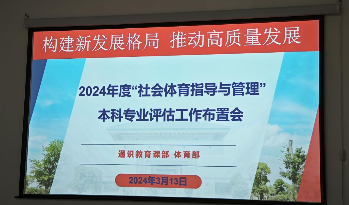 2024年3月13日下午3时,2024年度“社会体育指导与管理”本科专业评估工作布置会于图书馆104会议室顺利召开。马克思主义学院、通识教育课部院长何捷一、副院长王利军、副书记魏成杰、体育部主任柳华清及体育部全体教师参与本次会议,会议由柳华清主任主持。