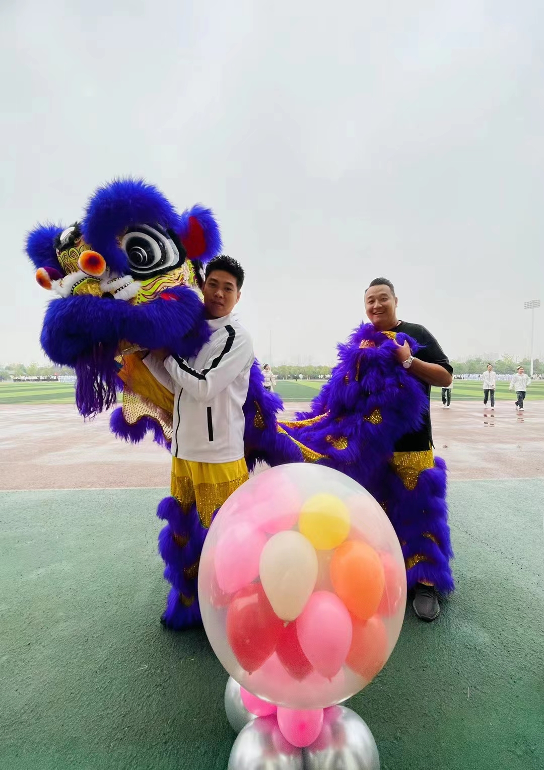 运动会上的萌狮子,是由通识教育课部体育系的昌顺和莫文涛两位老师联合完成各项高难度的动作。