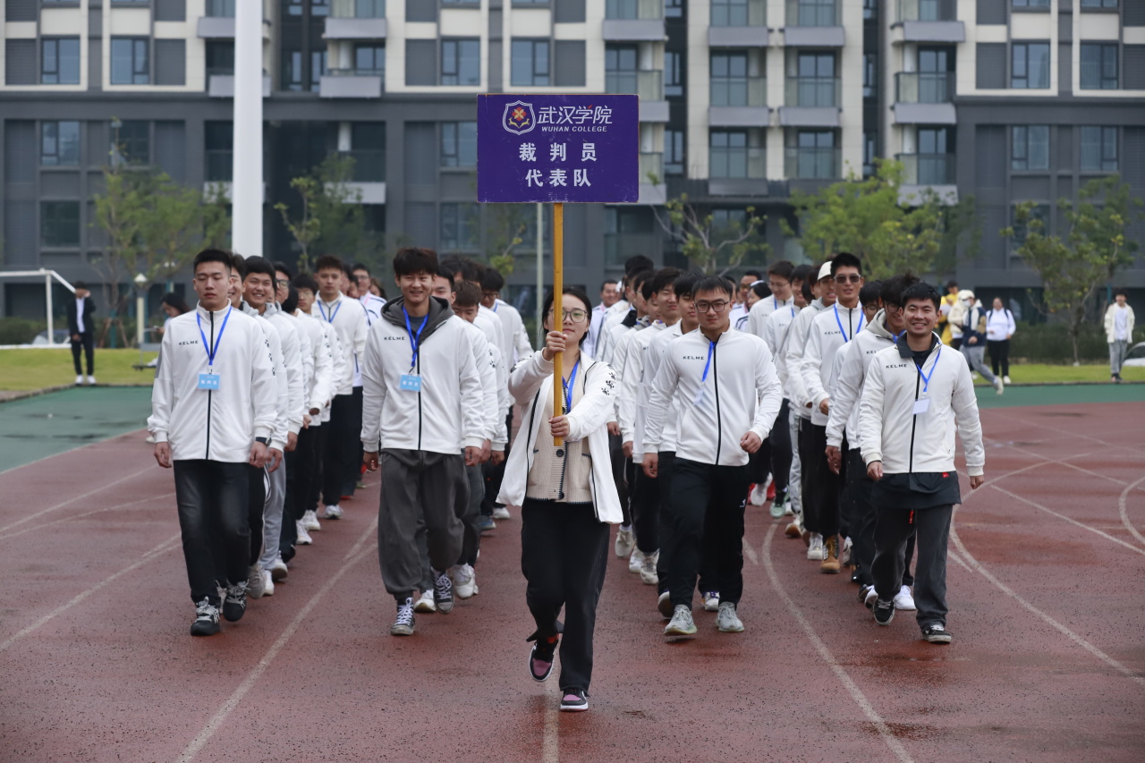 本次运动会上,首次让通识教育课部体育系的21级担任学生助理裁判的同学跟老师们一起走裁判员方阵,