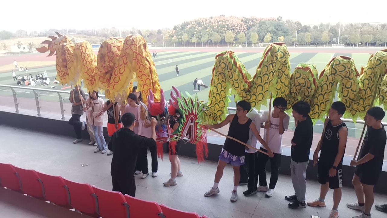 运动会上舞龙的同学是来自通识教育课部体育系23级学生,他们全都是第一次手握舞龙把杆。