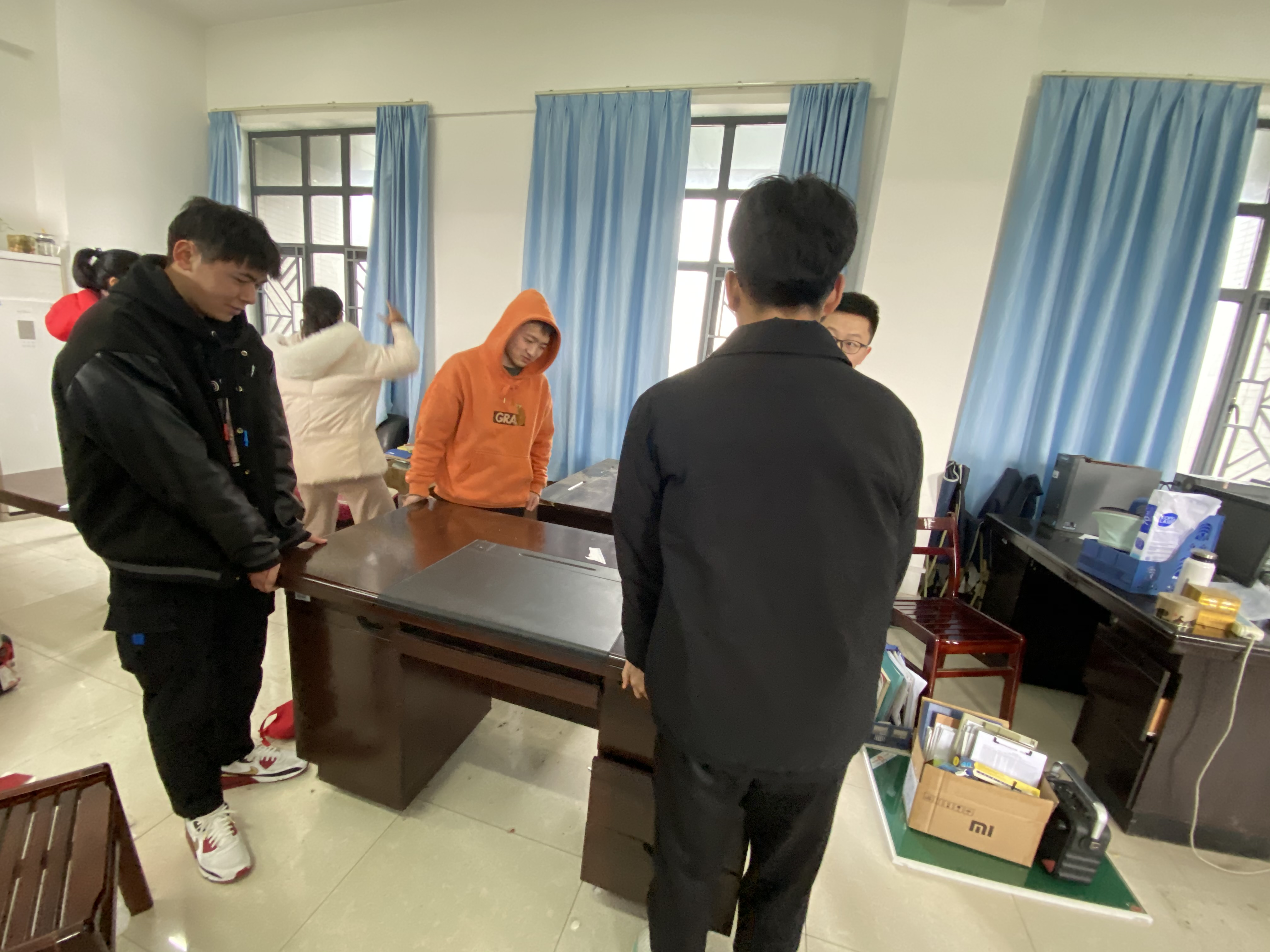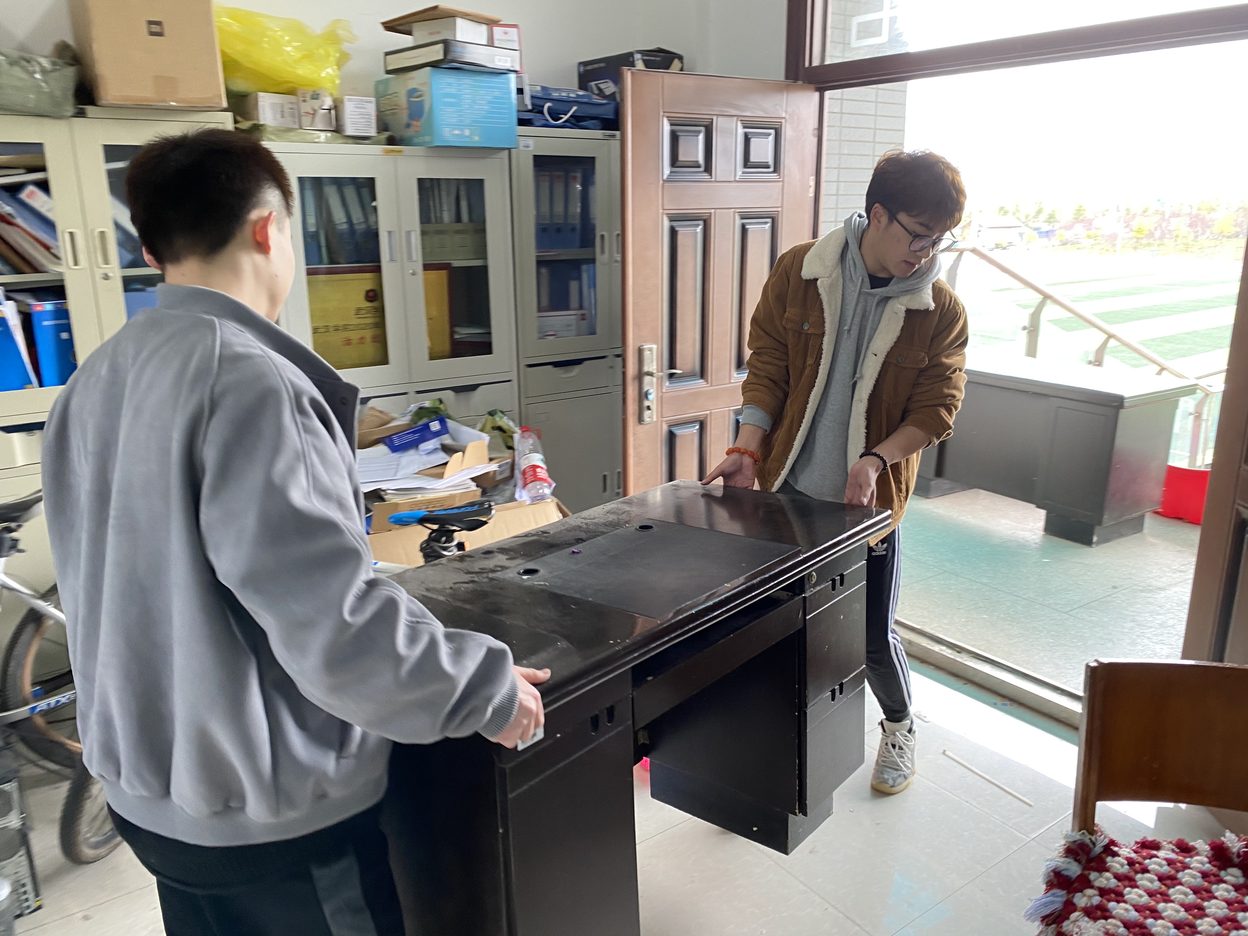 3月1日下午,体育系的同学们为老师更换办公桌椅,同学们齐心协力把重达200斤的桌子搬往几百米远的杂物间,再将新的桌椅搬去办公室,数十张桌子,几十名同学分工合作,男同学们负责体力活,女同学们负责清扫,男女搭配,工作有条不紊的进行,老师也和同学一起打扫,师生协力劳动,将办公室焕然一新。