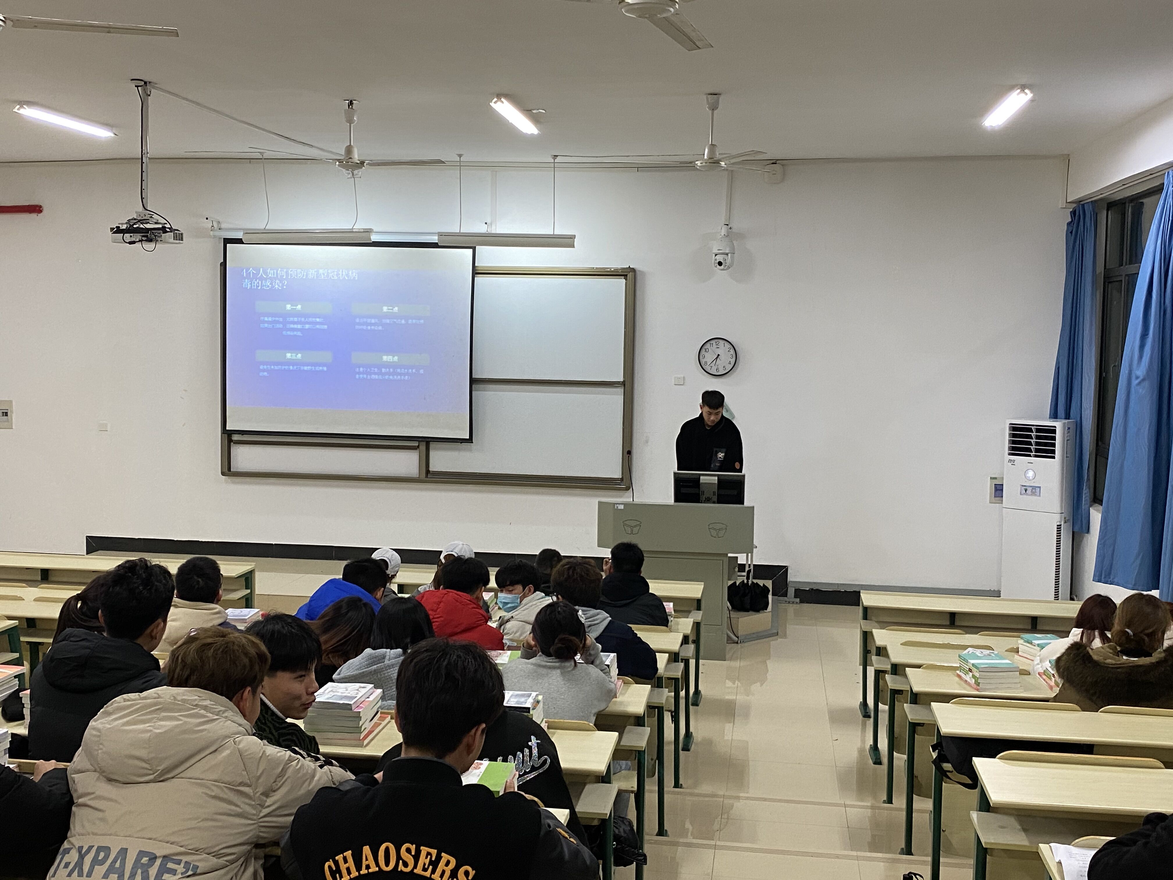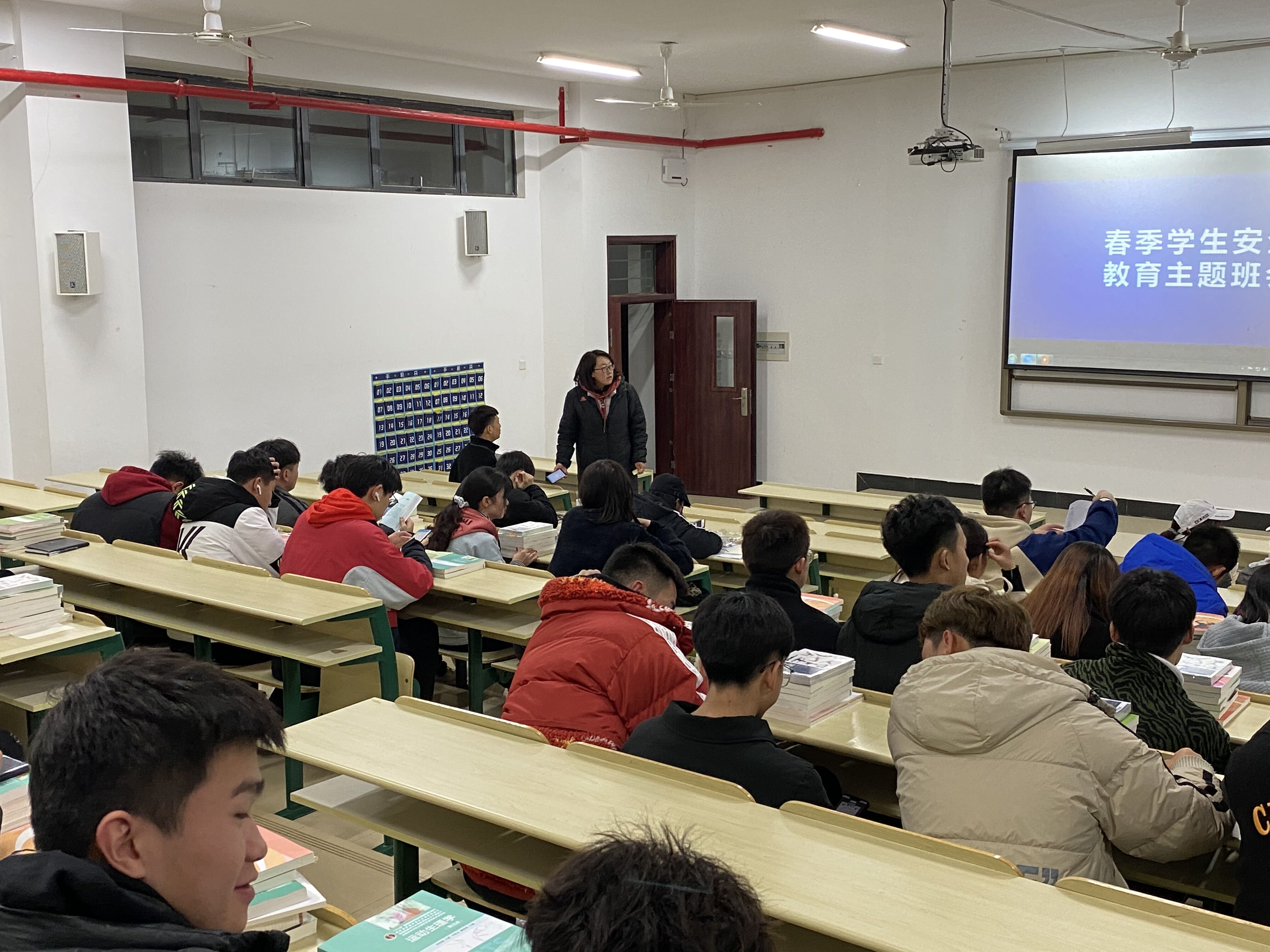 2021年2月28号通识教育课部体育系19届全体学生返校,晚上六点于中央教学楼4102召开本学期第一次班会,本次班会由班主任杨颖老师主持,为迎接同学们的到来和对于本学期同学们的校园学习、生活等方面的工作开展进行发言。